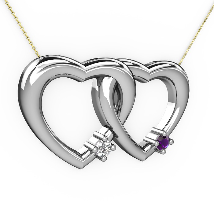 Beyaz zirkon ve ametist 925 ayar gümüş kolye (40 cm altın rolo zincir)