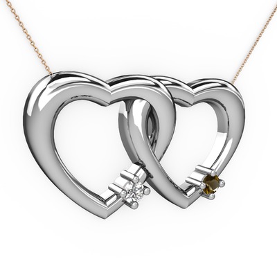 Beyaz zirkon ve dumanlı kuvars 925 ayar gümüş kolye (40 cm gümüş rolo zincir)