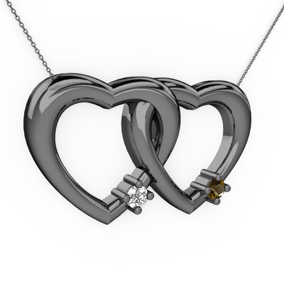 Beyaz zirkon ve dumanlı kuvars 925 ayar siyah rodyum kaplama gümüş kolye (40 cm gümüş rolo zincir)