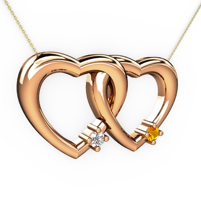 Beyaz zirkon ve sitrin 14 ayar rose altın kolye (40 cm altın rolo zincir)