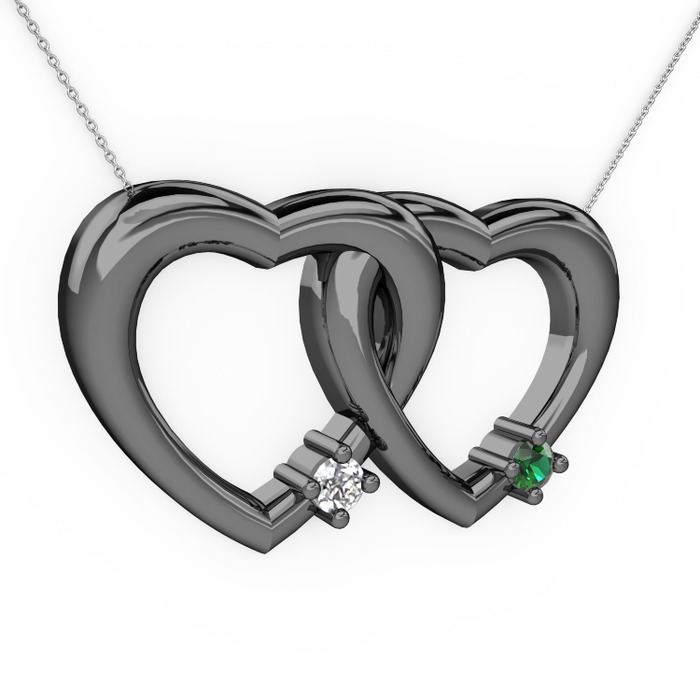 Beyaz zirkon ve yeşil kuvars 925 ayar siyah rodyum kaplama gümüş kolye (40 cm gümüş rolo zincir)