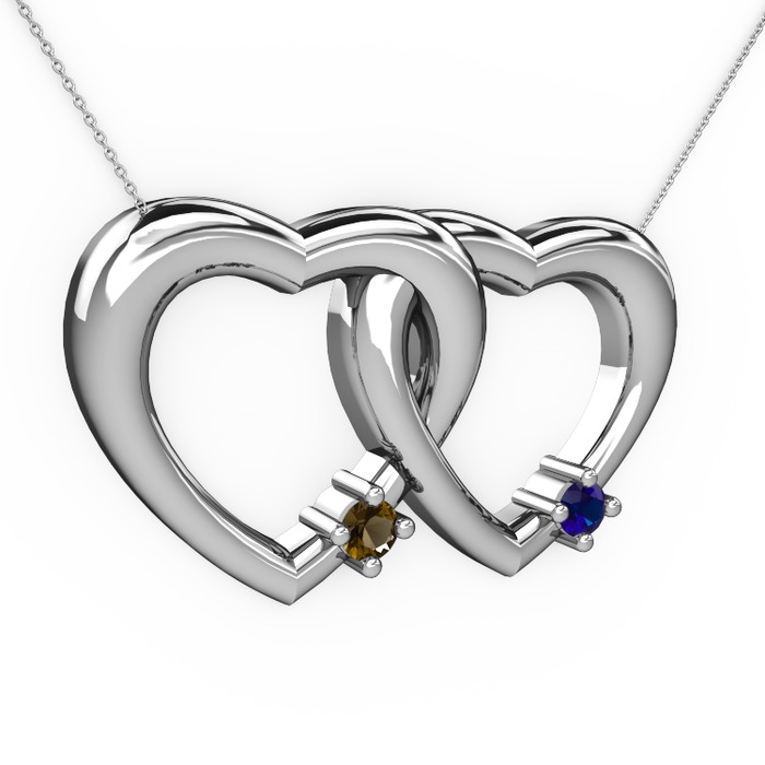 Dumanlı kuvars ve lab safir 8 ayar beyaz altın kolye (40 cm beyaz altın rolo zincir)
