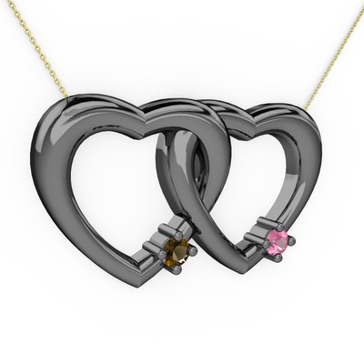 Dumanlı kuvars ve pembe kuvars 925 ayar siyah rodyum kaplama gümüş kolye (40 cm altın rolo zincir)