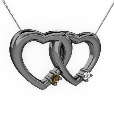 Dumanlı kuvars ve pırlanta 925 ayar siyah rodyum kaplama gümüş kolye (0.036 karat, 40 cm gümüş rolo zincir)