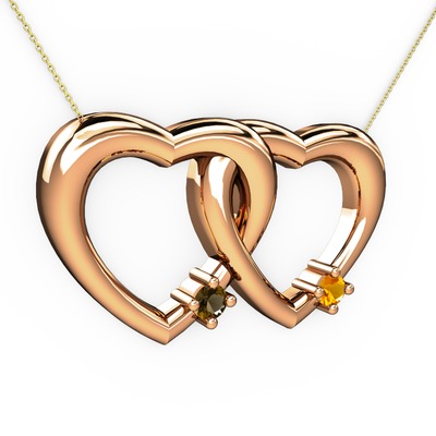 Dumanlı kuvars ve sitrin 18 ayar rose altın kolye (40 cm altın rolo zincir)