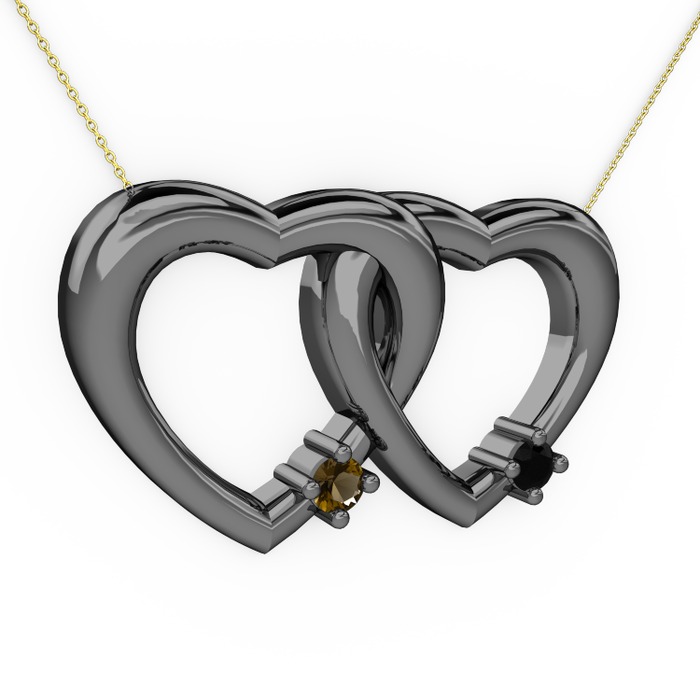Dumanlı kuvars ve siyah zirkon 925 ayar siyah rodyum kaplama gümüş kolye (40 cm altın rolo zincir)