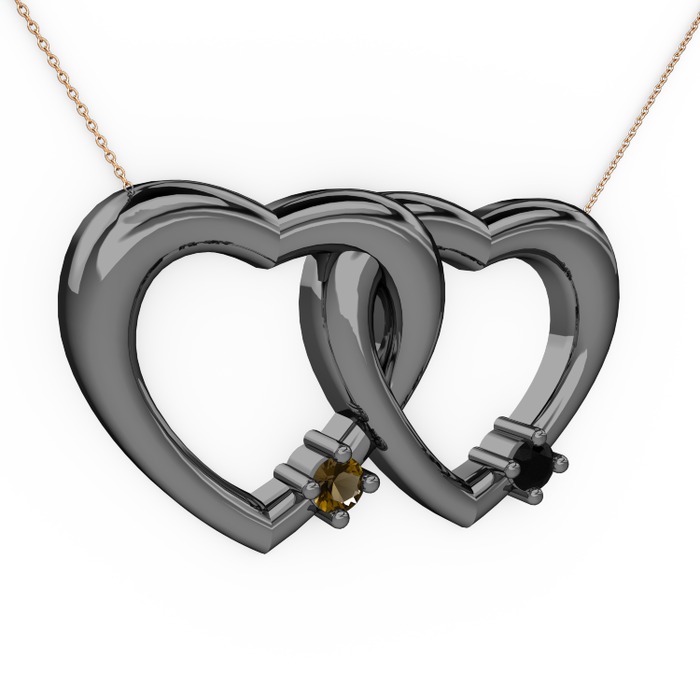 Dumanlı kuvars ve siyah zirkon 925 ayar siyah rodyum kaplama gümüş kolye (40 cm rose altın rolo zincir)