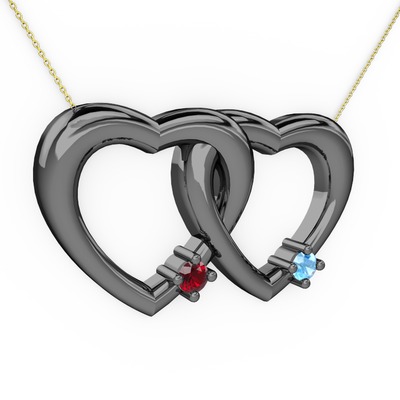 Garnet ve akuamarin 925 ayar siyah rodyum kaplama gümüş kolye (40 cm altın rolo zincir)
