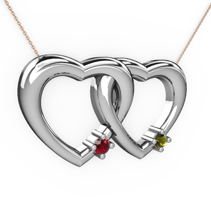 Garnet ve peridot 925 ayar gümüş kolye (40 cm rose altın rolo zincir)
