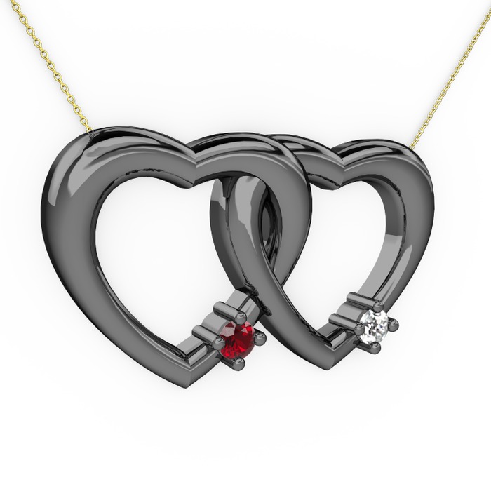 Garnet ve swarovski 925 ayar siyah rodyum kaplama gümüş kolye (40 cm altın rolo zincir)
