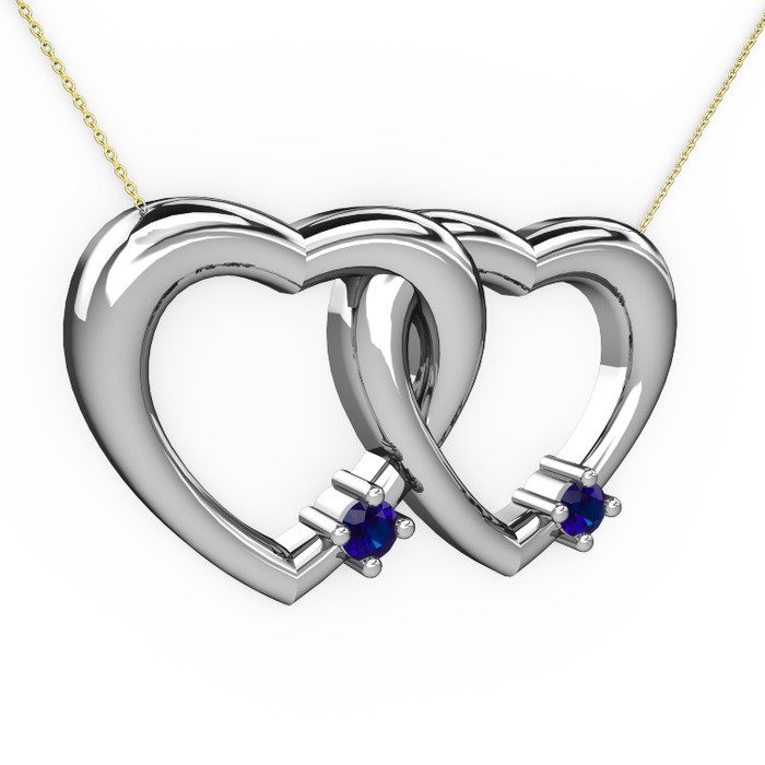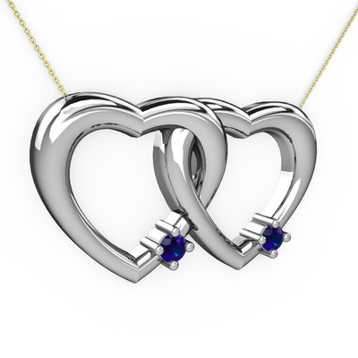 Lab safir 18 ayar beyaz altın kolye (40 cm gümüş rolo zincir)
