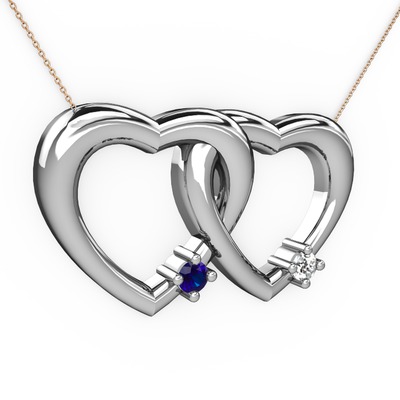 Lab safir ve beyaz zirkon 8 ayar beyaz altın kolye (40 cm gümüş rolo zincir)