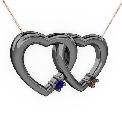 Lab safir ve dumanlı kuvars 925 ayar siyah rodyum kaplama gümüş kolye (40 cm rose altın rolo zincir)