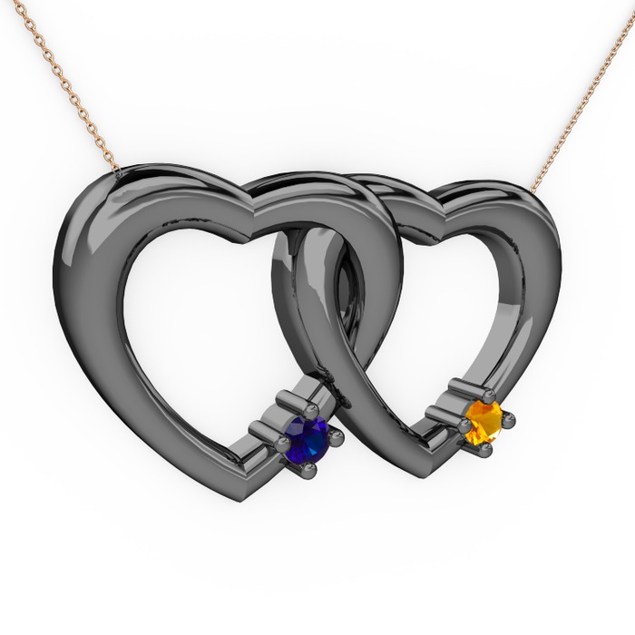 Lab safir ve sitrin 925 ayar siyah rodyum kaplama gümüş kolye (40 cm rose altın rolo zincir)