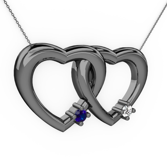 Lab safir ve swarovski 925 ayar siyah rodyum kaplama gümüş kolye (40 cm gümüş rolo zincir)