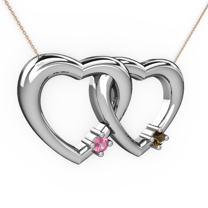 Pembe kuvars ve dumanlı kuvars 925 ayar gümüş kolye (40 cm gümüş rolo zincir)