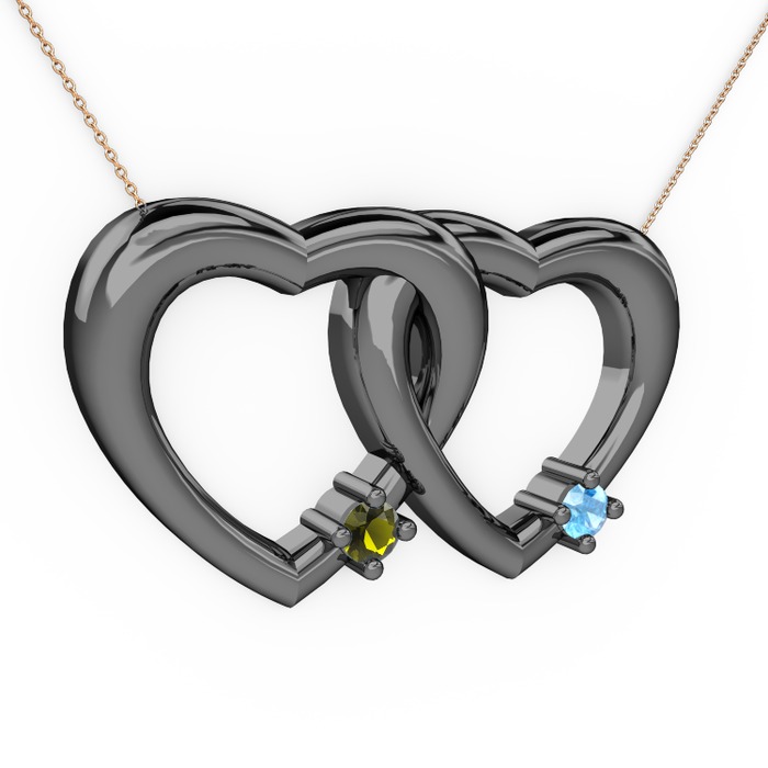 Peridot ve akuamarin 925 ayar siyah rodyum kaplama gümüş kolye (40 cm gümüş rolo zincir)