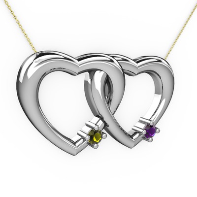 Peridot ve ametist 925 ayar gümüş kolye (40 cm altın rolo zincir)