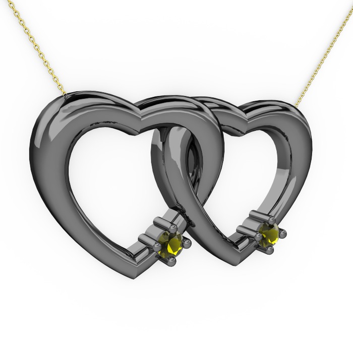 Peridot 925 ayar siyah rodyum kaplama gümüş kolye (40 cm altın rolo zincir)