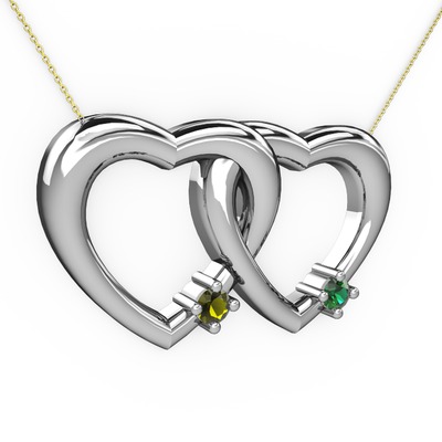 Peridot ve yeşil kuvars 14 ayar beyaz altın kolye (40 cm gümüş rolo zincir)