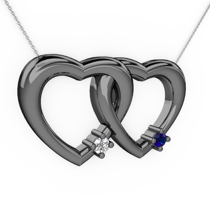 Pırlanta ve lab safir 925 ayar siyah rodyum kaplama gümüş kolye (0.036 karat, 40 cm beyaz altın rolo zincir)