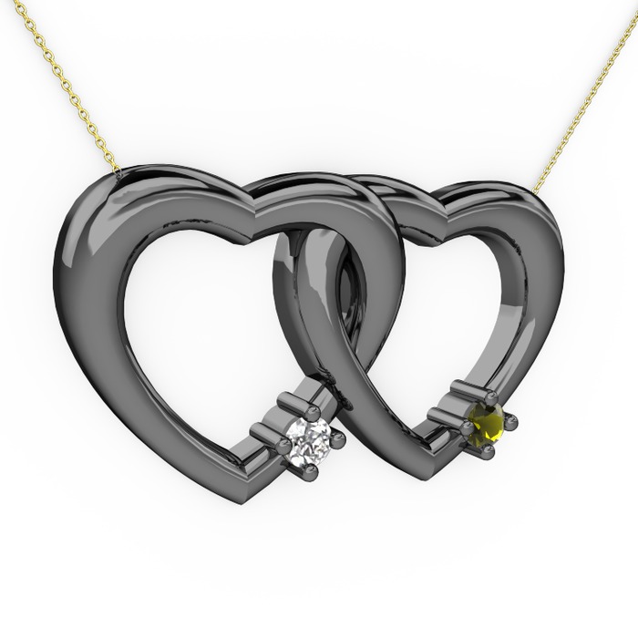 Pırlanta ve peridot 925 ayar siyah rodyum kaplama gümüş kolye (0.036 karat, 40 cm gümüş rolo zincir)