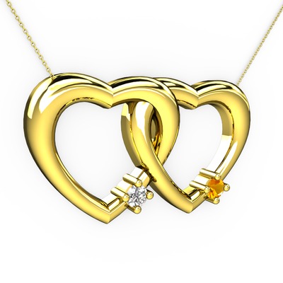 Pırlanta ve sitrin 14 ayar altın kolye (0.036 karat, 40 cm altın rolo zincir)