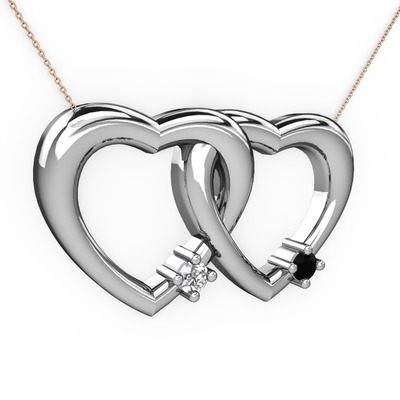 Pırlanta ve siyah zirkon 14 ayar beyaz altın kolye (0.036 karat, 40 cm rose altın rolo zincir)