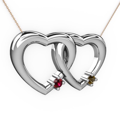 Rodolit garnet ve dumanlı kuvars 8 ayar beyaz altın kolye (40 cm gümüş rolo zincir)