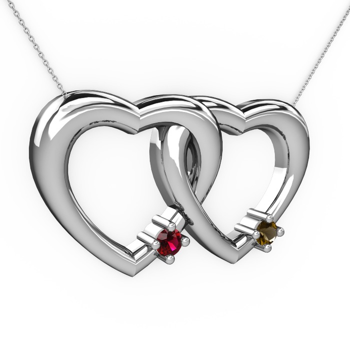 Rodolit garnet ve dumanlı kuvars 925 ayar gümüş kolye (40 cm beyaz altın rolo zincir)