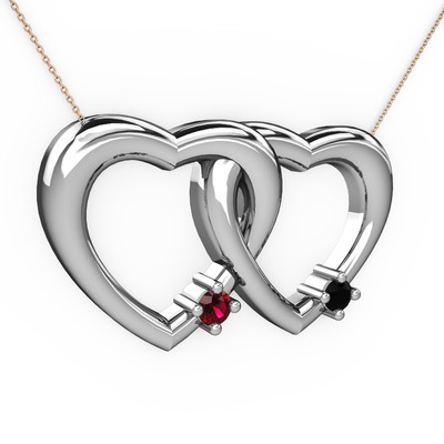 Rodolit garnet ve siyah zirkon 14 ayar beyaz altın kolye (40 cm rose altın rolo zincir)