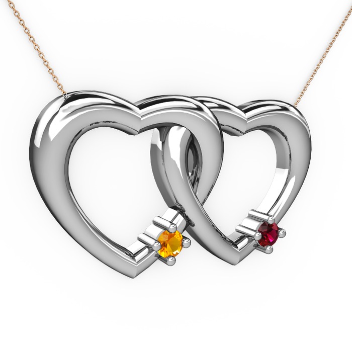 Sitrin ve rodolit garnet 14 ayar beyaz altın kolye (40 cm gümüş rolo zincir)