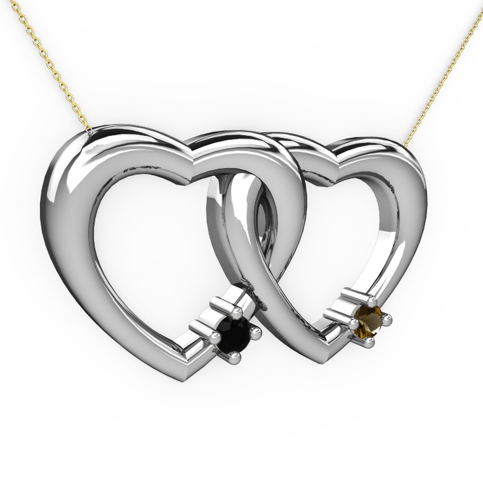 Siyah zirkon ve dumanlı kuvars 925 ayar gümüş kolye (40 cm altın rolo zincir)