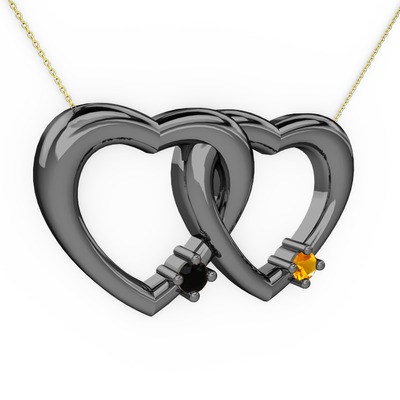 Siyah zirkon ve sitrin 925 ayar siyah rodyum kaplama gümüş kolye (40 cm gümüş rolo zincir)