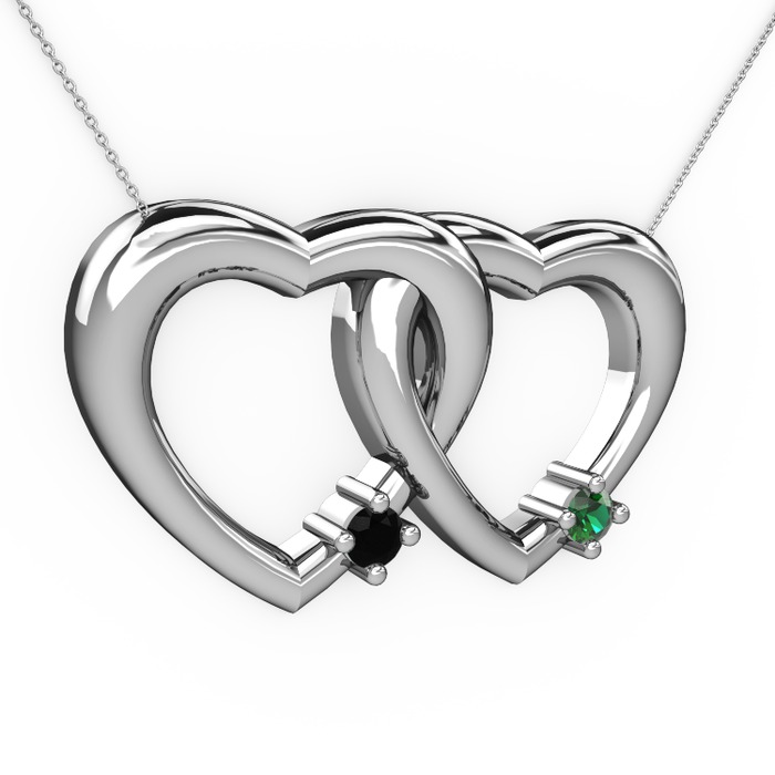 Siyah zirkon ve yeşil kuvars 925 ayar gümüş kolye (40 cm beyaz altın rolo zincir)