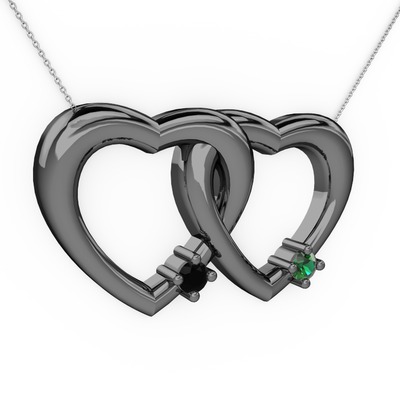 Siyah zirkon ve yeşil kuvars 925 ayar siyah rodyum kaplama gümüş kolye (40 cm gümüş rolo zincir)