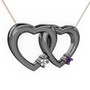 Swarovski ve ametist 925 ayar siyah rodyum kaplama gümüş kolye (40 cm rose altın rolo zincir)