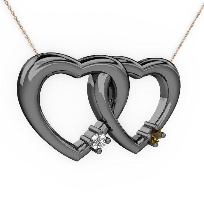 Swarovski ve dumanlı kuvars 925 ayar siyah rodyum kaplama gümüş kolye (40 cm rose altın rolo zincir)