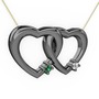 Yeşil kuvars ve beyaz zirkon 925 ayar siyah rodyum kaplama gümüş kolye (40 cm gümüş rolo zincir)