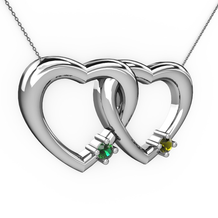 Yeşil kuvars ve peridot 8 ayar beyaz altın kolye (40 cm gümüş rolo zincir)