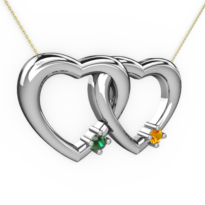 Yeşil kuvars ve sitrin 8 ayar beyaz altın kolye (40 cm gümüş rolo zincir)