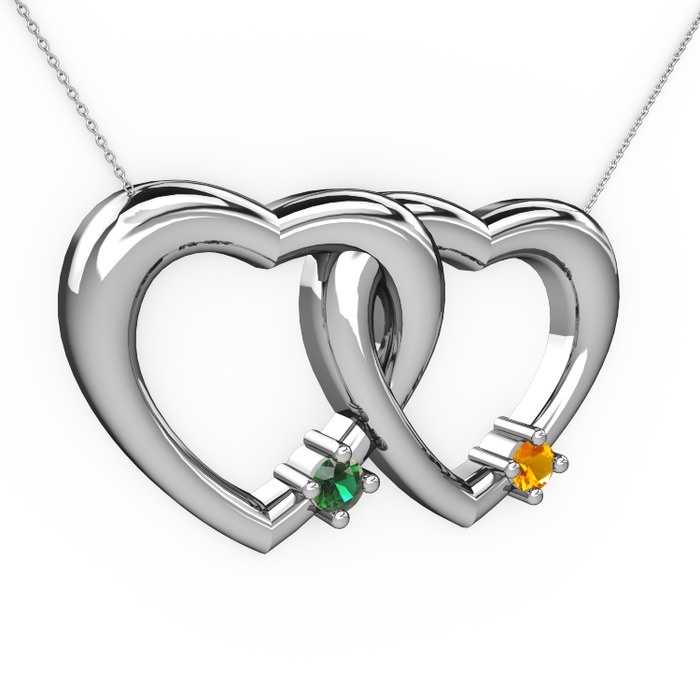 Yeşil kuvars ve sitrin 925 ayar gümüş kolye (40 cm gümüş rolo zincir)