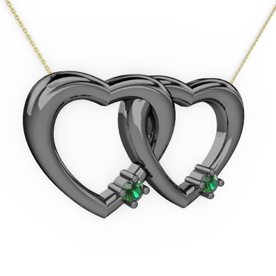 Yeşil kuvars 925 ayar siyah rodyum kaplama gümüş kolye (40 cm altın rolo zincir)