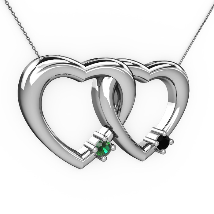 Yeşil kuvars ve siyah zirkon 18 ayar beyaz altın kolye (40 cm gümüş rolo zincir)