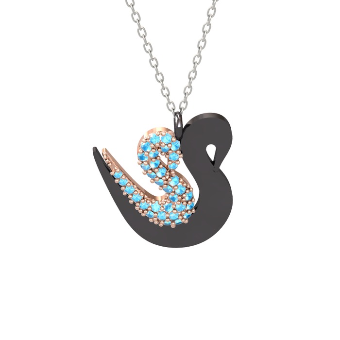Akuamarin 14 ayar rose altın kolye (40 cm beyaz altın rolo zincir)