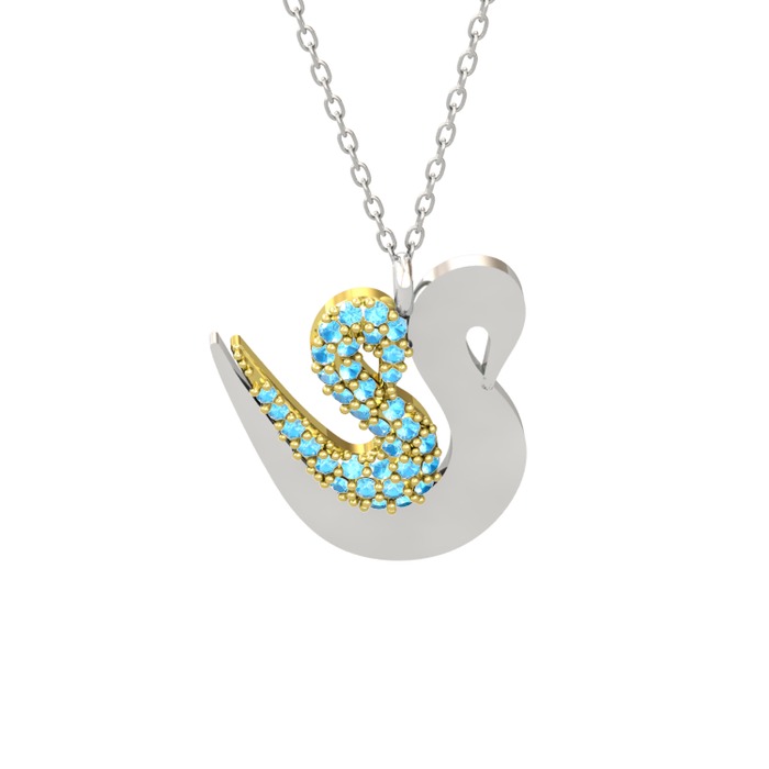 Akuamarin 8 ayar altın kolye (40 cm beyaz altın rolo zincir)