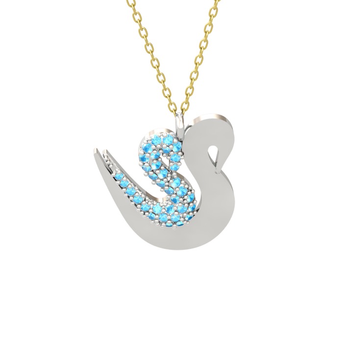 Akuamarin 925 ayar gümüş kolye (40 cm altın rolo zincir)