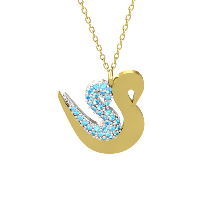 Akuamarin 925 ayar gümüş kolye (40 cm altın rolo zincir)
