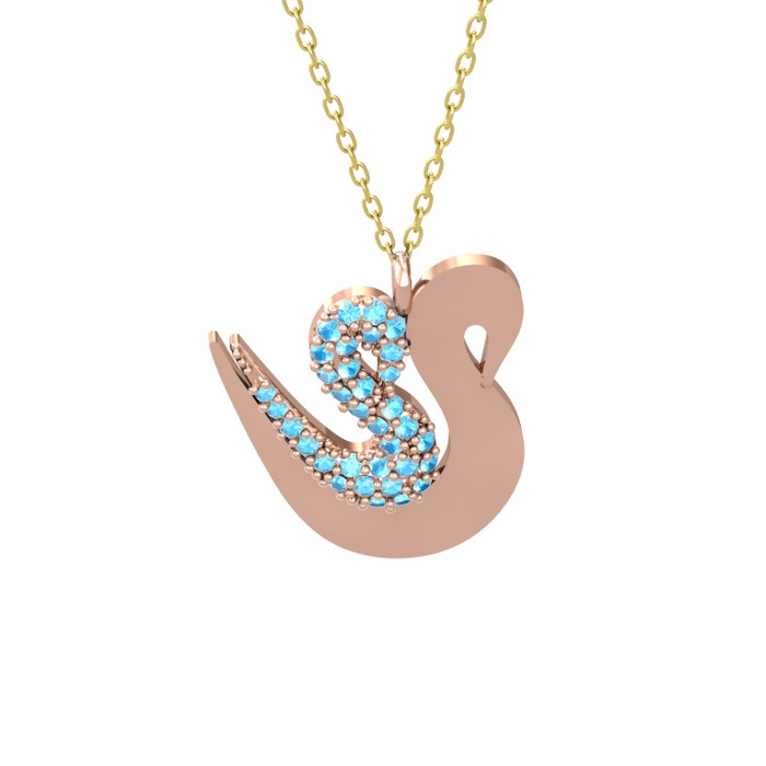Akuamarin 925 ayar rose altın kaplama gümüş kolye (40 cm altın rolo zincir)