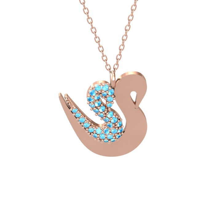 Akuamarin 925 ayar rose altın kaplama gümüş kolye (40 cm rose altın rolo zincir)